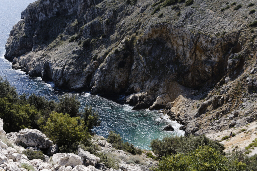 Ecco, so che suona un po’ stonato immaginare vacanzieri d’agosto che, anziché pensare a bagni e aperitivi, si lasciano trasportare da queste suggestioni: eppure, a spiriti in cerca di autenticità e echi di storie, l’isola di Cres stimola proprio pensieri e curiosità di questo tipo; un’isola ancora selvaggia, percorsa come una spina dorsale da una lunga strada che la segna più o meno a metà, svelando qualcosa ora di una riva, ora di un’altra. E poi vie laterali, che salgono appunto a perdersi tra fitte foreste e borghi misteriosi, o che invece scendono vertiginose, spalancando davanti agli occhi lo spettacolo di una mare atavico, rabbioso, mai completamente rilassante eppure profondamente rasserenante. E nell’impari dialettica tra i luoghi e gli uomini, testimoniata dalle tracce umili e utili delle attività agricole, pastorali, marinare che poco o nulla hanno modificato della crosta dura e grinzosa di quest’isola, e persino nel predomino della natura sull’uomo, si possono davvero trovare gli echi lontani eppure ancora intensi della vita di generazioni del passato.